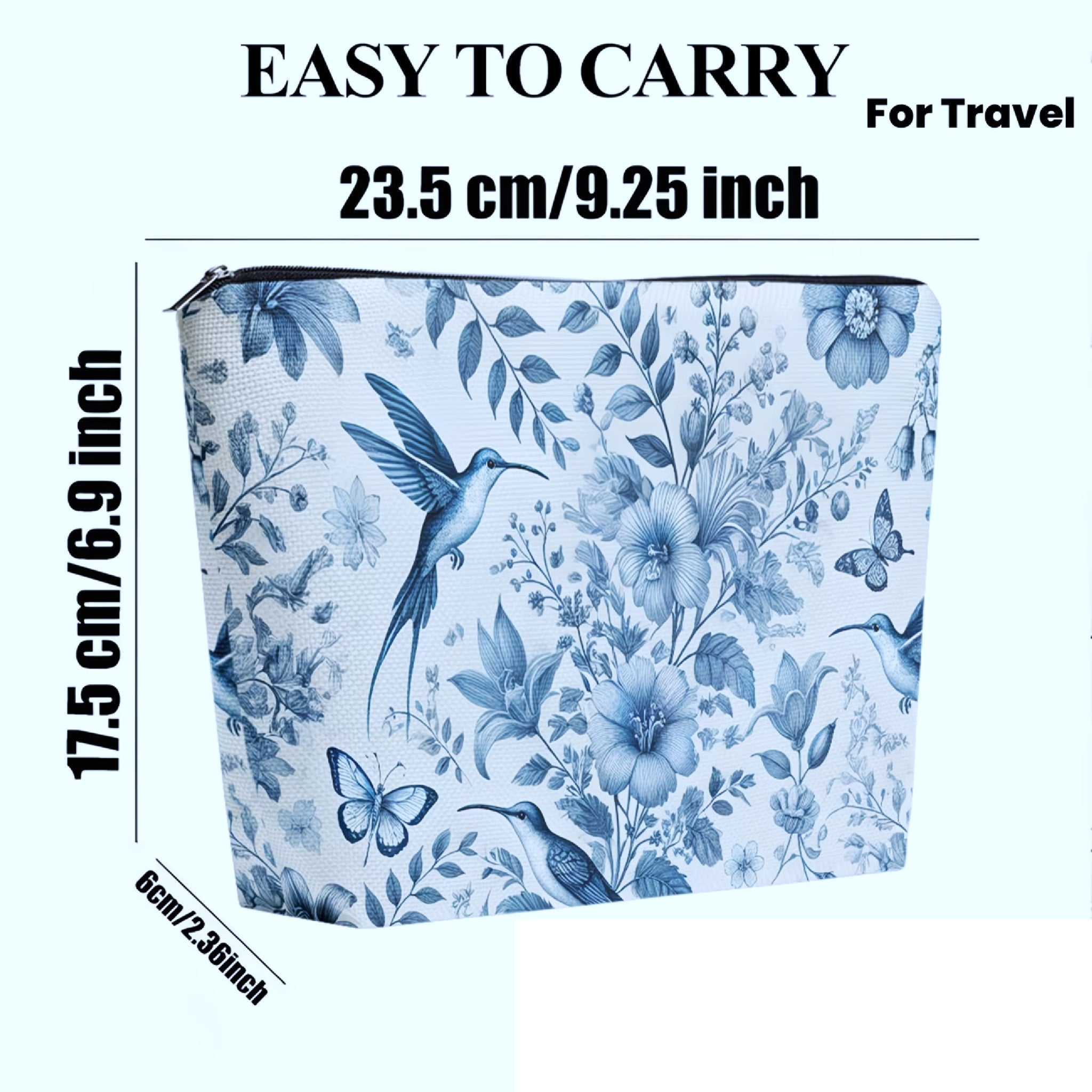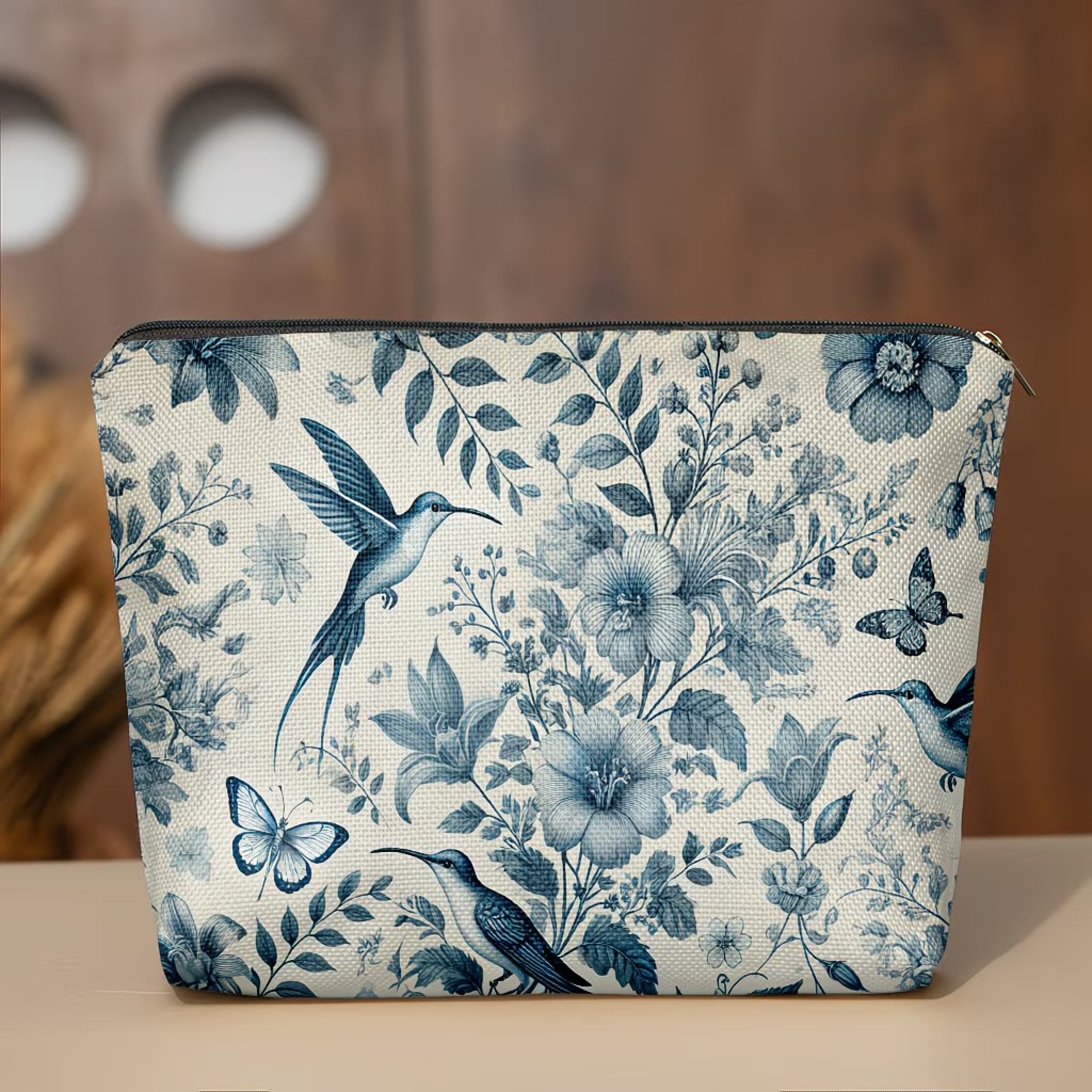 Hummers in the Garden Blue on Linen Zippered Pouch