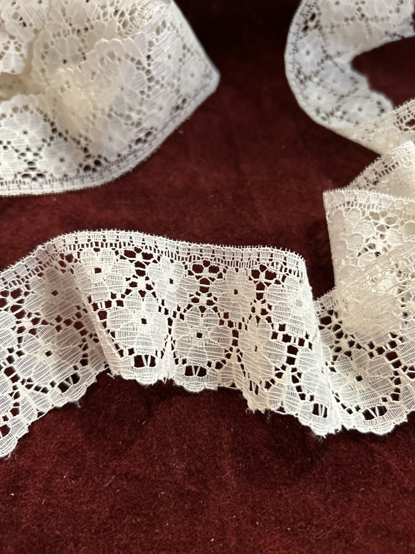 Vintage 70's - Double row Floral motif.  One straight edge, one scalloped edge.